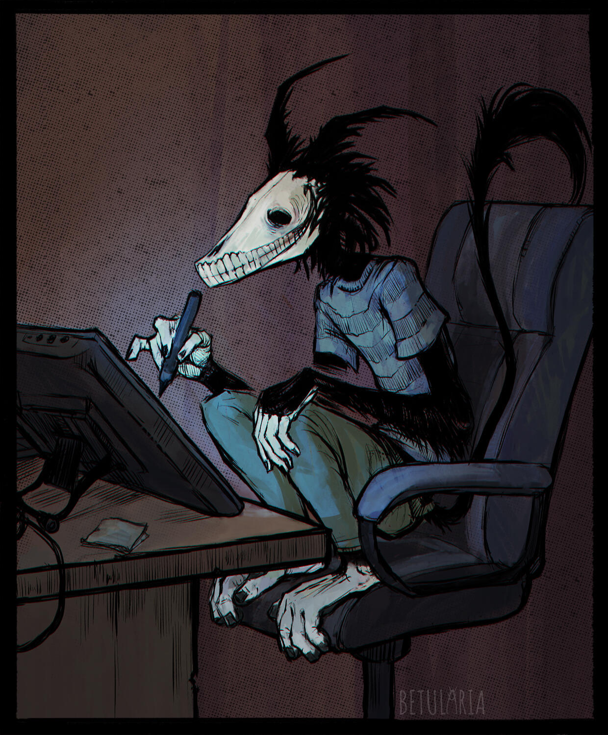 Hello, I'm Moth, a normal human person specialising in character and creature creation.I have a BA in traditional painting, but to the disappointment of my mentors, I detest mundane realism and use my skills for fantasy and horror.I also love comics and storyboarding. My passion project is [Ratworld](url here).My tools include Photoshop, Clip Studio Paint, Sketchbook Pro, as well as various traditional media.